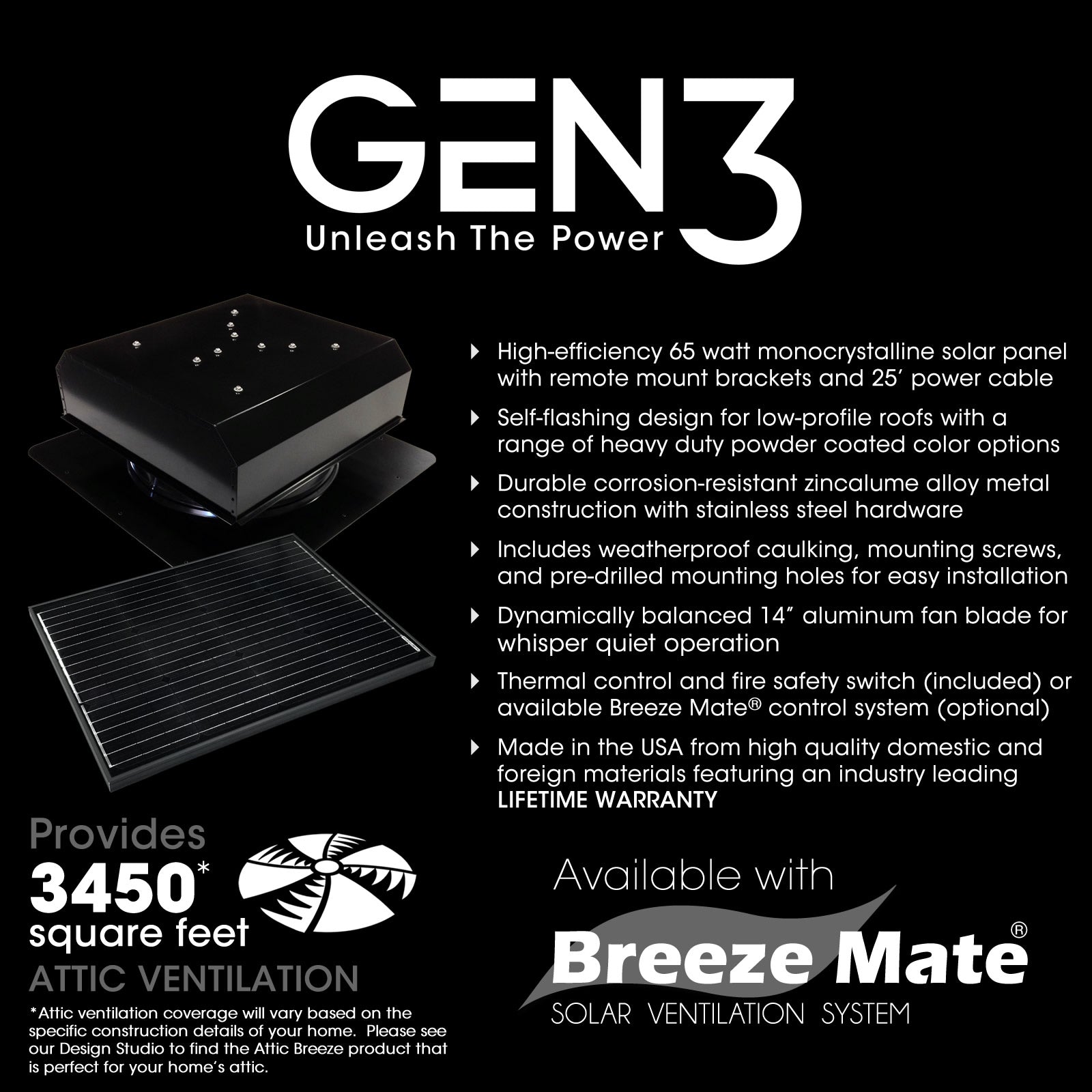 Engineered with Attic Breeze UltraFlo® technology and third-generation performance upgrades, the AB-6523D solar attic fan delivers up to 2150 CFM of airflow in full sun exposure and offers an industry-leading WARRANTY.